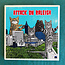 Coasters featuring the "Attack on Raleigh" cat art of the Raleigh Skyline.