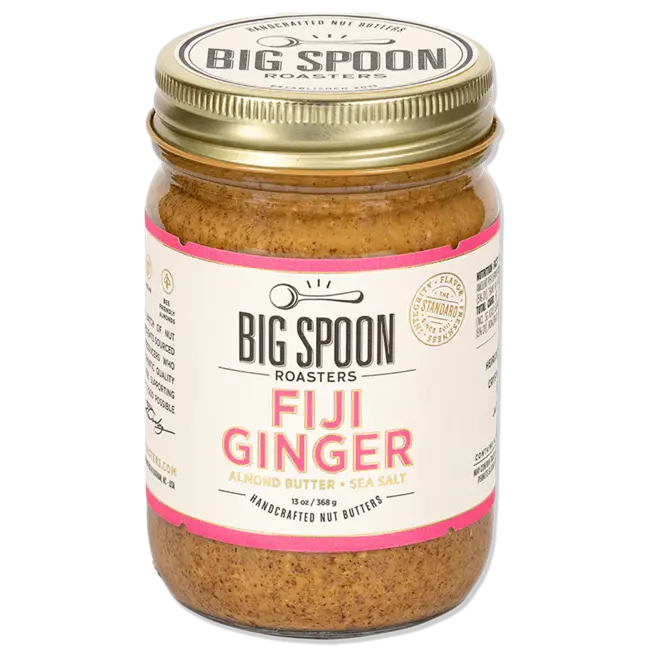 This Fiji Ginger Almond Butter combines fresh-roasted Mission almonds with gorgeous, golden-hued crystallized Fiji ginger, and Jacobsen sea salt.