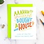 Card description: Hand lettered "Aaahhh! You fucking bought a house! Look at you, you grown ass adult, you!"