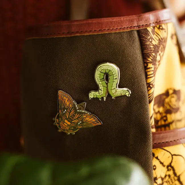By Local Artist, Solstice Handmade! Set of 2 apx 1.5in hard enamel pins 2 silver butterfly backings on each Comes on a wrapped pin card