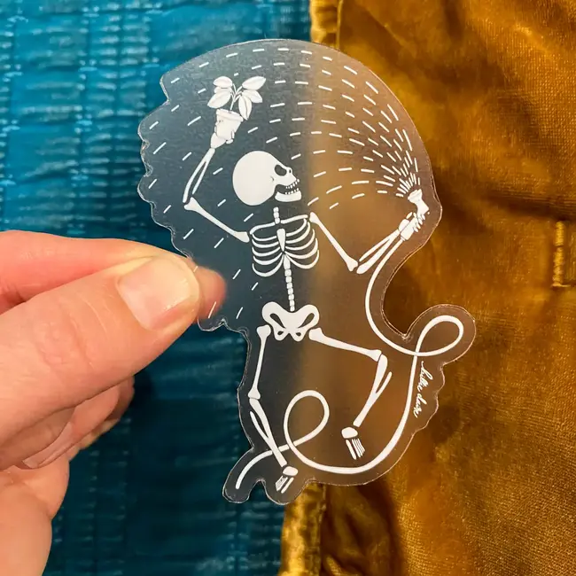 Vinyl Sticker (White on Clear) // Garden Skeleton