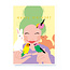 Girl and pets, 'happy birthday' gold foil message. Blank inside and supplied with an off white envelope. Designed and printed in the UK.