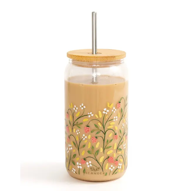 Sip your favorite beverages in style with this Strawberry Meadow Glass Can. Adorned with hand-illustrated design, this latte glass adds a touch of spring to your tea, coffee, or water-drinking experience. Read more.