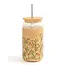 Features |Â Hand-painted design on glass coffee cup with bamboo lid. Straw included.