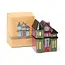 Hand painted and packaged in a printed box with 20 incense cones and 1 tea light. Crafted to allow incense smoke to smolder through the backside, and for candlelight to flicker through the windows.