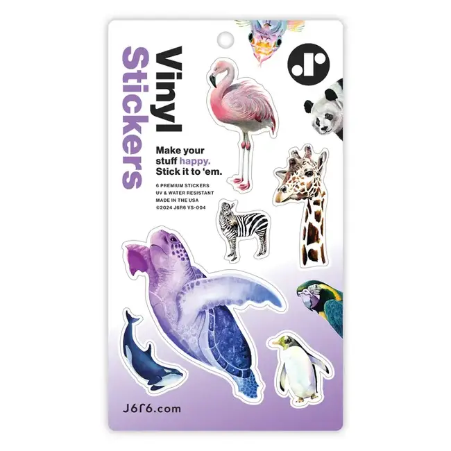 This sticker sheet includes six vinyl stickers in various sizes (sea turtle, zebra, penguin, orca whale, flamingo, and giraffe). Read more.