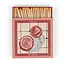 These sets of 100 matches come in a hand illustrated work of art matchbox. Each box features metallic or glossy accents, two strikers, and all 100 match tips are colored to match the design.
