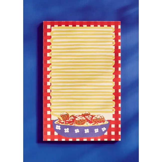 Inspired by red-and-white tablecloths and cozy pasta nights, the Spaghetti & Meatballs Notepad adds playful charm to your grocery list or dinner prep. It’s giving Lady and the Tramp.