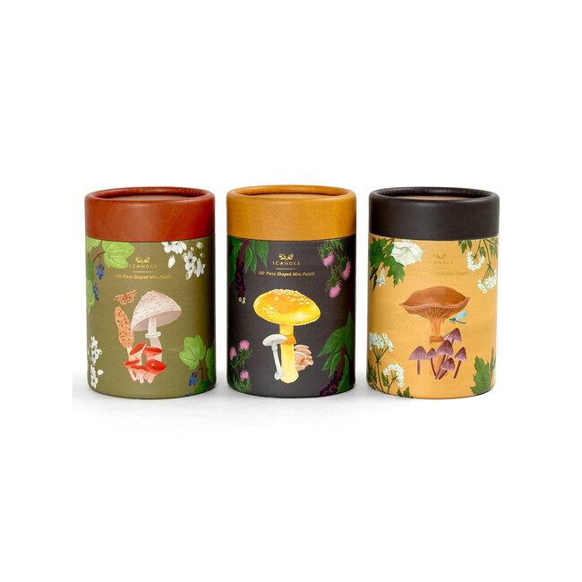 Discover the magic of nature with this set of three 100-piece shaped jigsaw puzzles, featuring hand-painted illustrations of mushrooms. Perfect for nature enthusiasts, this set captures the enchanting world of fungi found in the midnight forest. Read more.