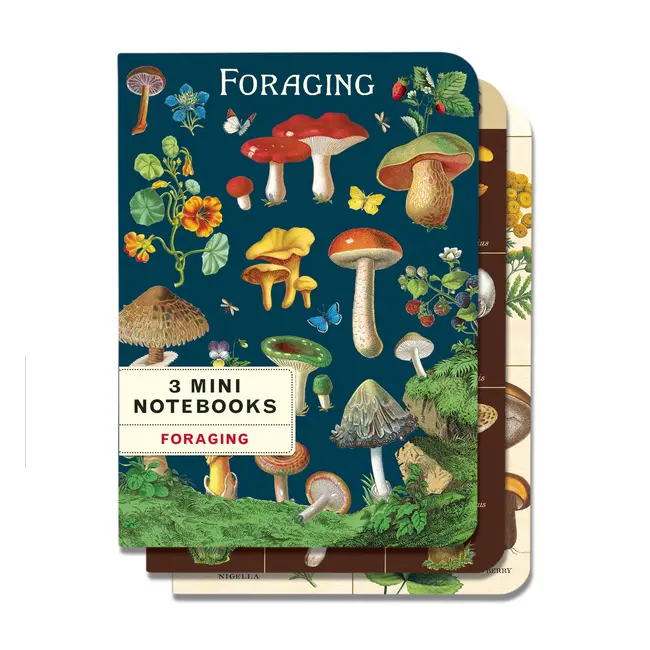 Cavallini & Co. Foraging theme is a smash hit! The Foraging Mini Notebook Set features rich and colorful images of plants from the forest floor- mushrooms, various flowers and tree branches, as well as butterflies flitting around them.