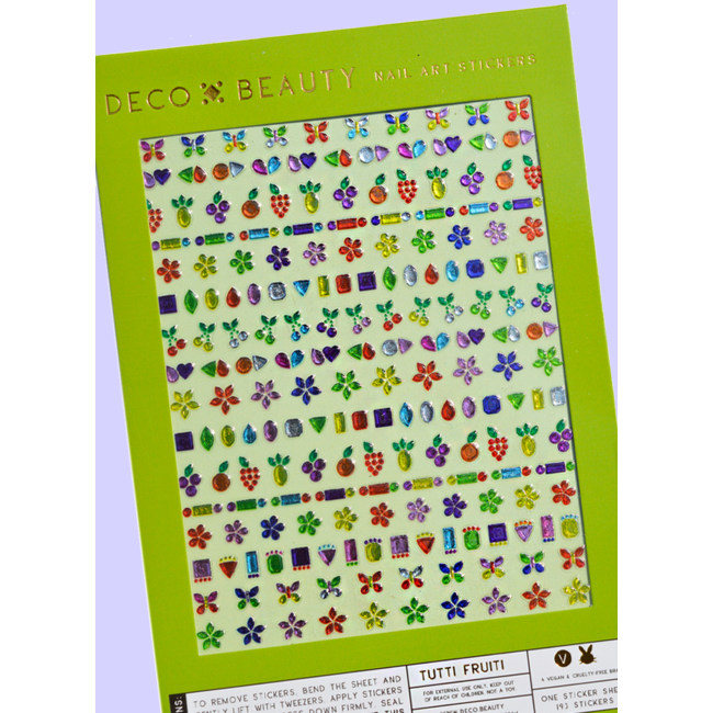 What's more summer than Tutti Frutti nail art stickers? Inspired by the iconic jewelry trend that began in the 1920s, Tutti Frutti features classic cut gemstone designs as well as gems in the shapes of fruits, flowers, and butterflies. Read more.