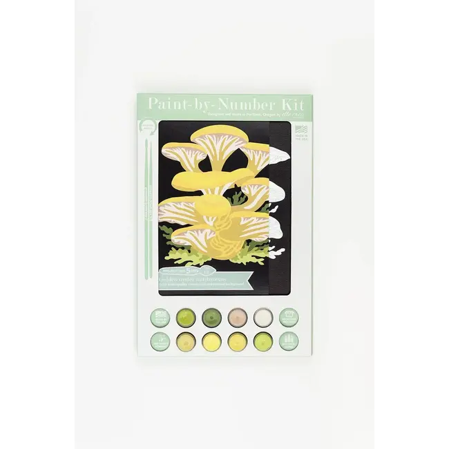 Golden Oyster Mushrooms” features an encyclopedia plate that showcases a bunch of sunny Golden Oyster mushrooms. The pre-printed background features the name of the fungi on rich black. Read more.