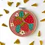It comes with 6 inch hoop. preprinted fabric, floss, needle and lots of stitching assistance at rikrack.com. Your kit is packaged in a beautiful full color envelope that is perfect for gift giving.