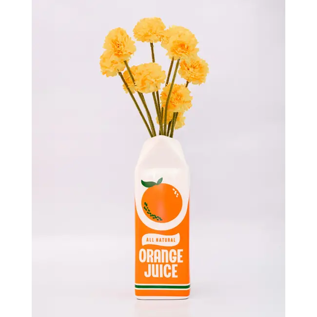 A little-known secret? Flowers love orange juice. Well, they actually just love this little vase that looks like an old school orange juice carton.