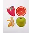 Stickers with superpowers. This set includes four unique fruit stickers with soothing textured surfaces.