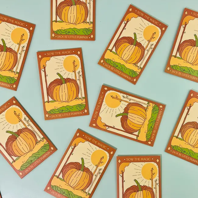 In tarot, this pumpkin connects to the Three of Wands, symbolizing vision, adventure and growth. Like this card’s forward-looking spirit, Jack Be Little reminds us that small beginnings can lead to abundant rewards.