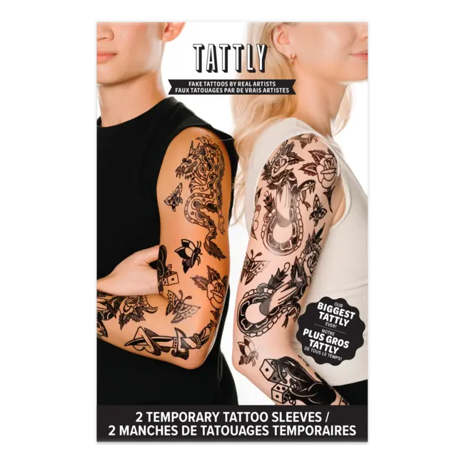 Tattly tattoos are printed with cruelty-free and vegan ink, lasting on average 2-4 days. We suggest placing on oil-free areas where skin does not stretch and keep them clean!