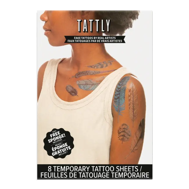 Each set comes packaged in our card stock sleeve with a full-color photo on the front, and contains 8 tattoos and a single Tattly Sponge!