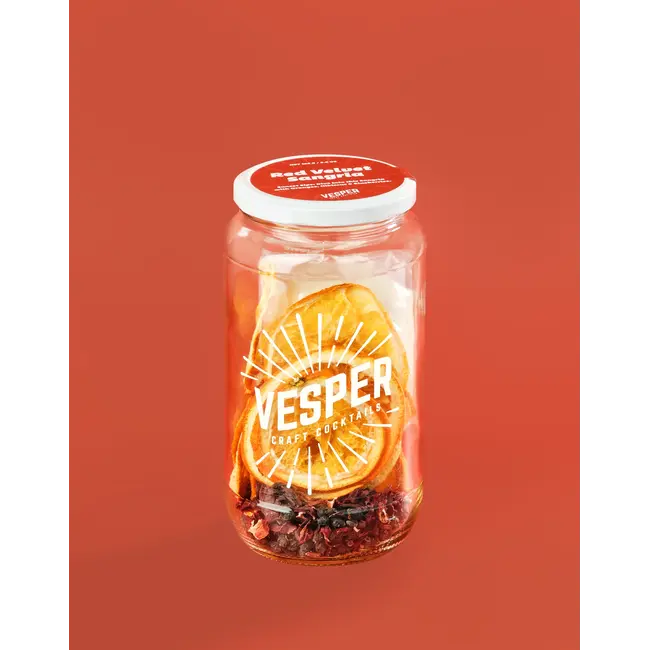 Cocktail Kit includes: ready for infusion 32oz glass jar with Orange, Hibiscus, Blueberry and Organic Cane Sugar.