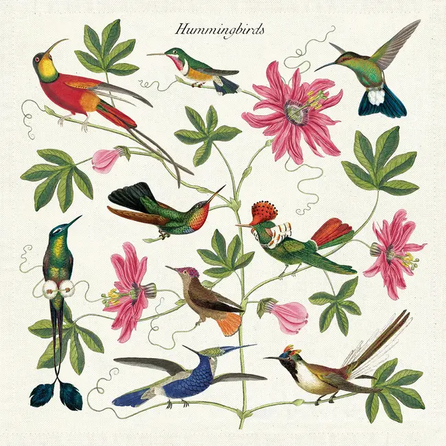 This set of four cotton napkins features colorful, delicate and majestic hummingbirds- ready to bring life to any occasion. Hummingbirds are a recent addition to Cavallini's collections- also found on gift wrap, tote bags, vintage pouches and tea towels. Read more.