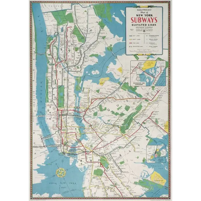 Vintage poster of the map of the NYC Subways Lines by Cavallini Papers & Co.! Perfect for gift wrapping, or frame it as artwork! Printed on Italian acid-free paper.