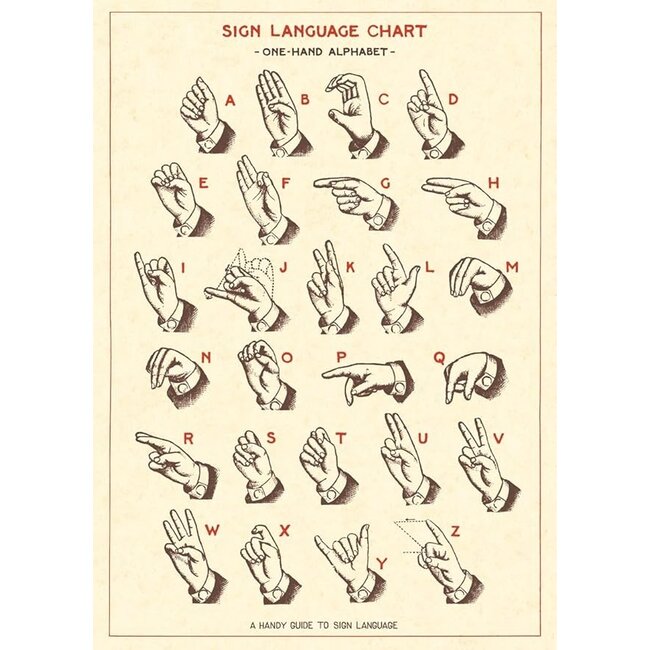 Vintage poster of the Sign Language Chart by Cavallini Papers & Co.! Perfect for gift wrapping, or frame it as artwork! Printed on Italian acid-free paper.