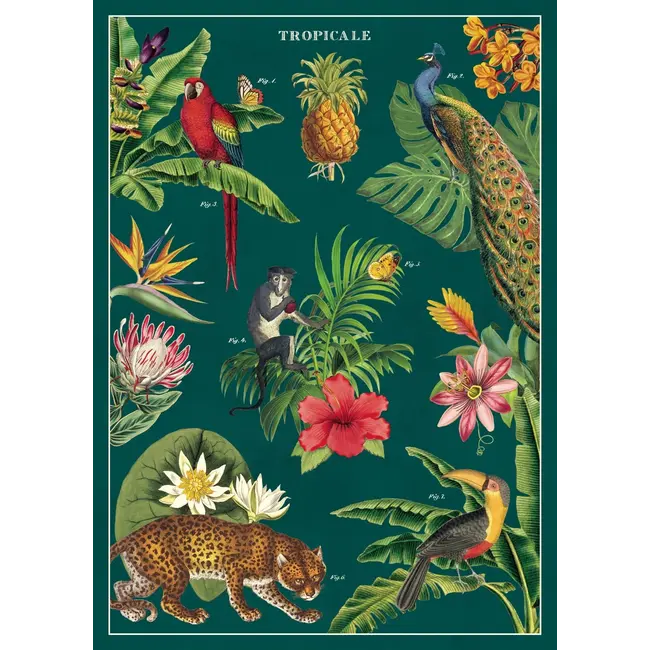 Vintage poster of tropical animals and plants by Cavallini Papers & Co.! Perfect for gift wrapping, or frame it as artwork! Printed on Italian acid-free paper.