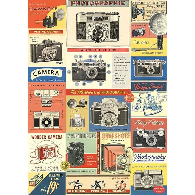 Vintage poster of vintage cameras by Cavallini Papers & Co.! Perfect for gift wrapping, or frame it as artwork! Printed on Italian acid-free paper. Measures 20" x 28"