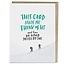 Card reads "This Card Made Me Think Of Us And How We Would Never Do This" featuring two hikers scaling a snowy mountain.